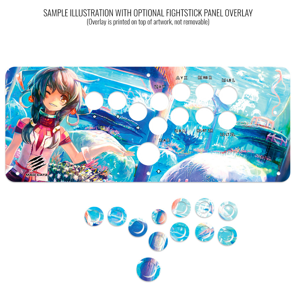 The artwork is designed to fit the MadCatz SFxT or Pro Fightstick.