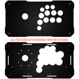 Much like the AllFightSticks family of steel enclosures, you can swap the top panel layout without having to purchase a new enclosure. You can choose the one of currently eight layouts that you desire for your kit. Because the design is made of acrylic, it is possible to add more layouts over time.