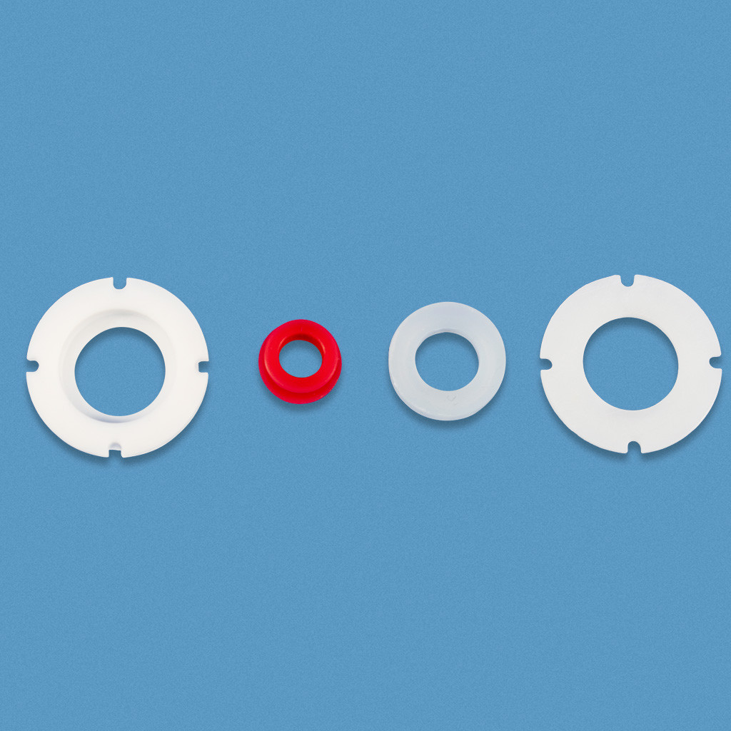 OTTO DIY made each major plastic component of the kit out of Polytetrafluoroethylene, or PTFE. It is commonly known as Teflon®. Not only does this material give the kit components their unique color, but significantly reduces friction on components that must interact with each other. For example, the pivot and pivot core of the OTTO DIY kit will hardly need greasing, producing nearly fluid directional control.