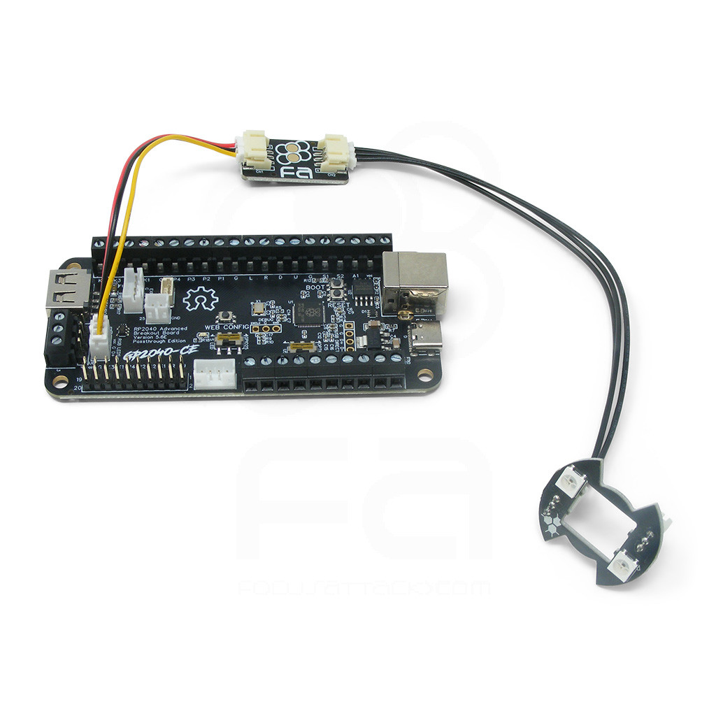 Should you use the FA 30mm Button RGB LED for GP2040-CE, it's highly recommended that you also purchase the converter board. The pinout order of our LEDs may not match other devices natively. Your adapter will come with a wire already connected to the `In` side, simply connect that to your RP2040 Advanced Breakout board's RGB LEDs" port and the `Out` side to the LED modules. From there, you can connect a FA 3-Pin RGB LED Connector Harness (6 Inch) or FA 3-Pin RGB LED Connector Harness (12 Inch) to the RGB LED.
