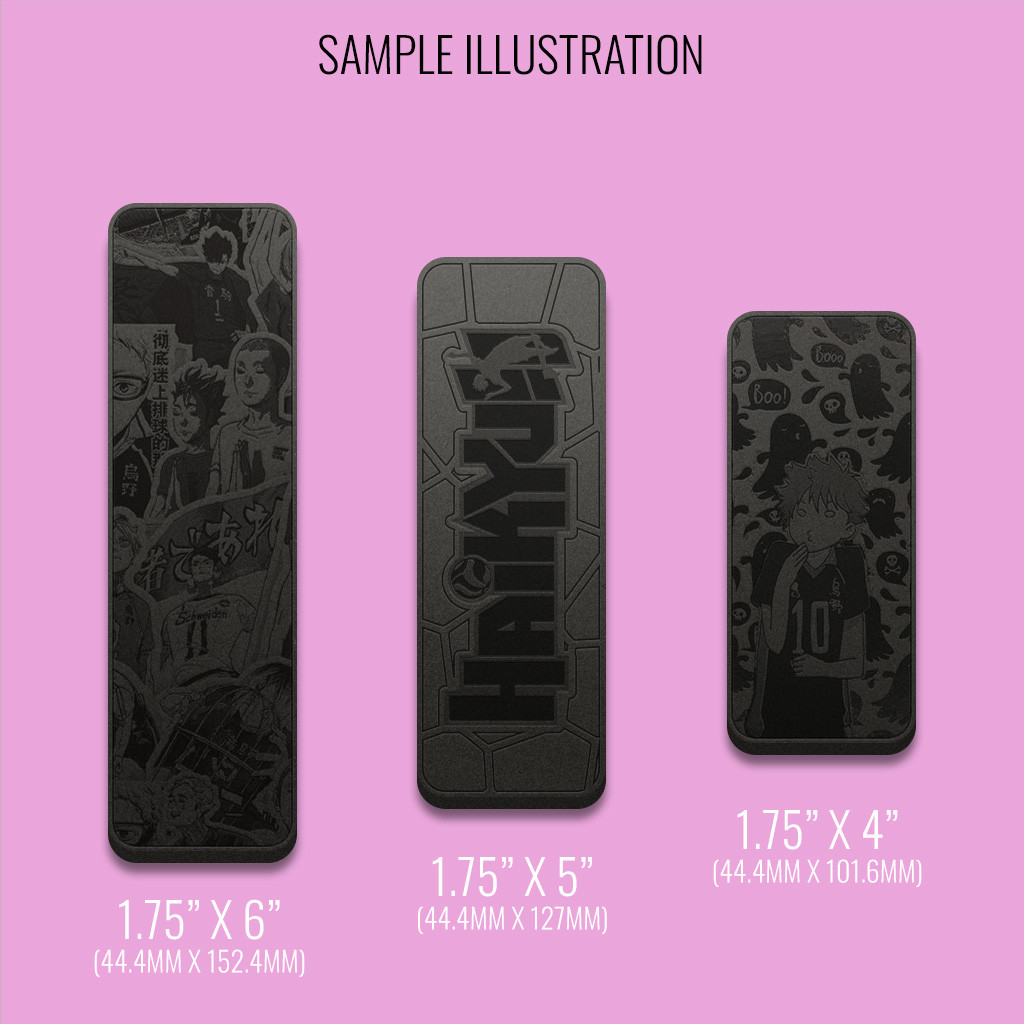 Choice of pre-designed logo (etched center, 50-75% of pad area). | Customer provides illustration to etch onto the entire pad, or across two split pads where applicable. |