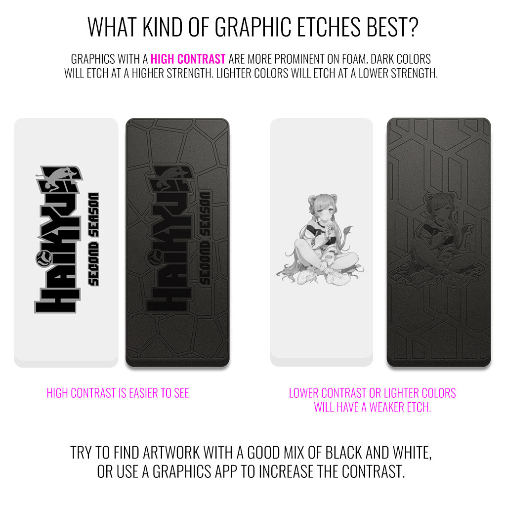It's important to know that we provide both Semi-Custom and Full Custom options for this foam pad. These are available in separate listings. Semi-Custom listings have a green background in its photo examples. Full Custom listings have a purple background in their photo examples. Below are comparisons between the two:Differences between Semi-Custom Full Custom Etch