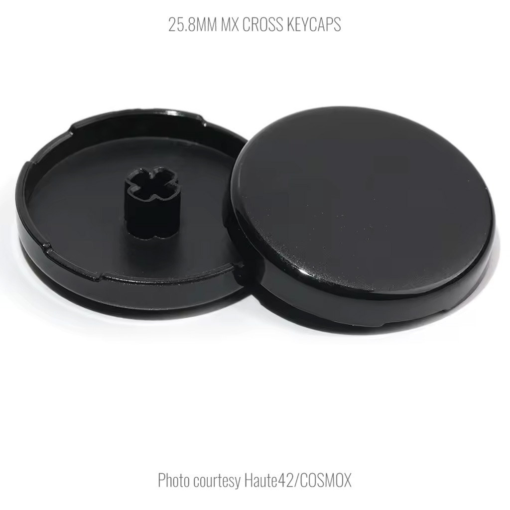 The button caps come in two sizes: 23.5 mm and larger 25.8mm. Both are low-profile at just 6mm tall.