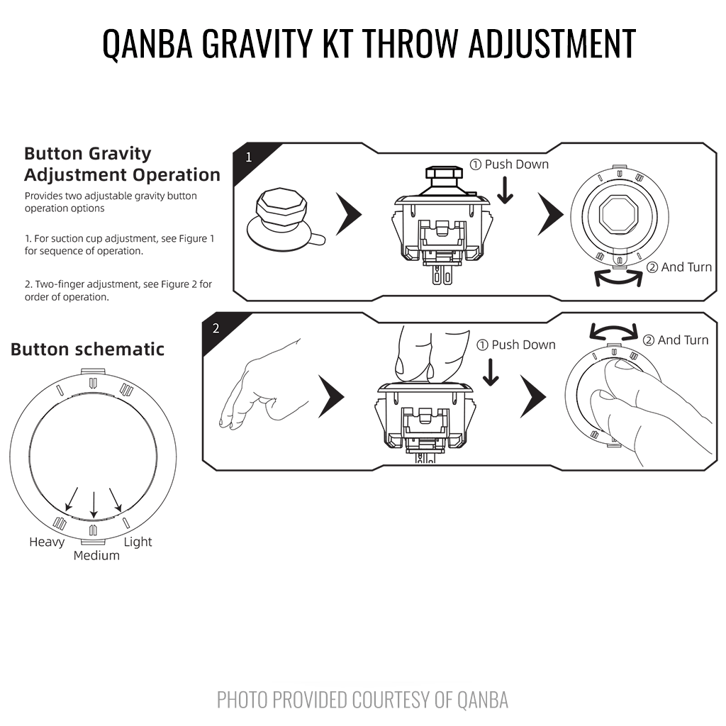 Over the years, Fightstick manufacturer Qanba evolved quickly into a prominent designer of parts and accessories. Their recent model of pushbuttons are the GRAVITY KT - a unique arcade pushbutton with adjustable throw settings, designed to meet your preferred engagement sensitivity.