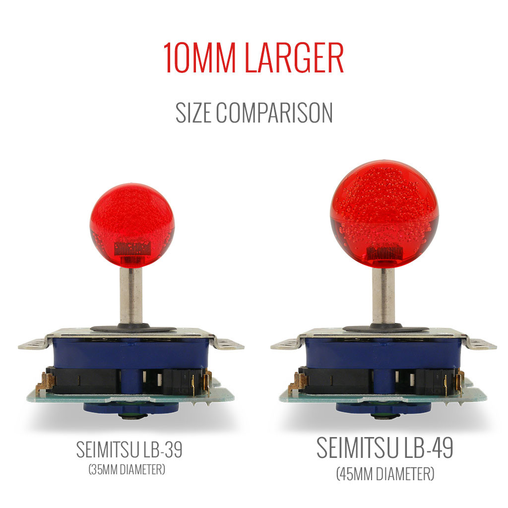 10mm Larger than Standard LB-35/39. Compatible with JLF and Seimitsu JoysticksFighting game players are arguably taller and larger than their counterparts 10 years ago. To that end, we have received requests for larger accessory handles for those who feel the smaller LB-39 is too cramped for desired gameplay. The larger balltop - while an older product from Seimitsu - appears perfect for players with larger hands or simply enjoy the feel of a wider diameter balltop.