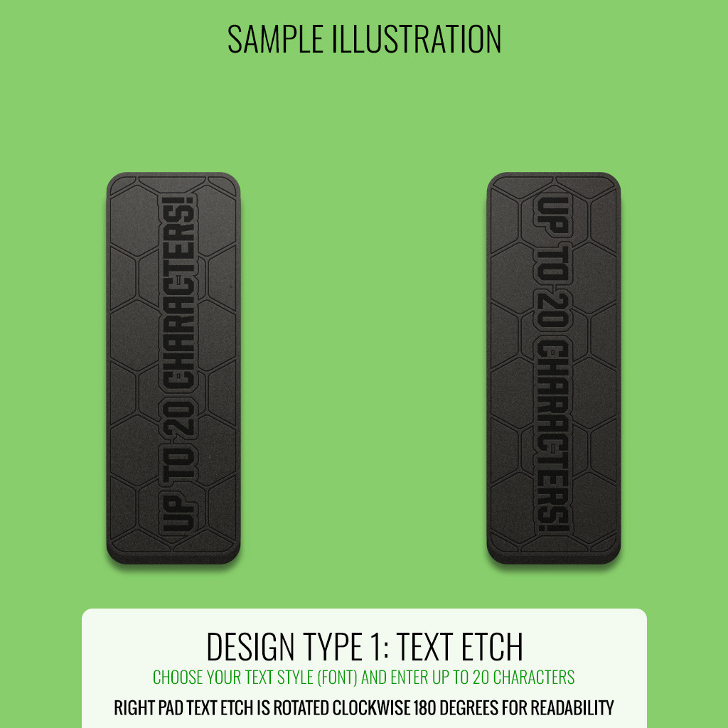 Custom text (up to 20 characters). | Customer provides transparent PNG logo or graphic (etched center, 50-75% of pad area). |