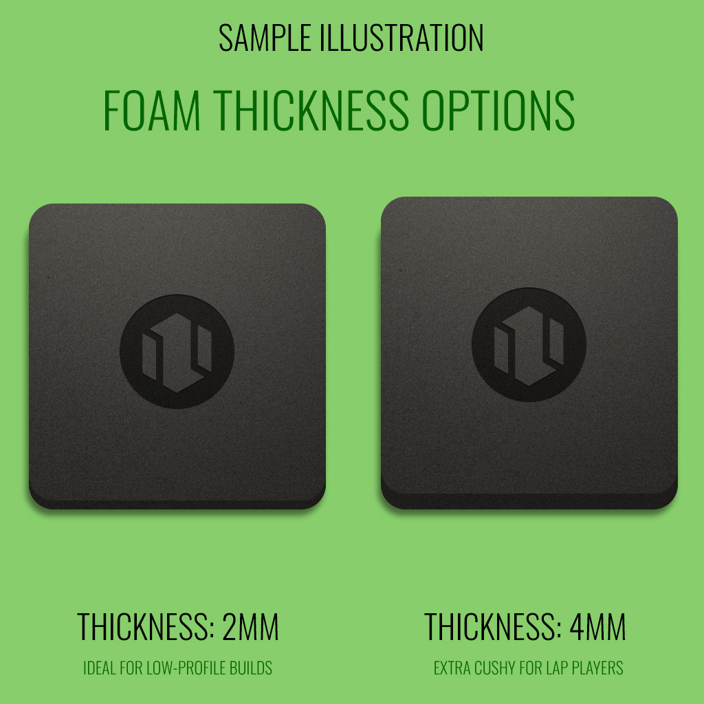 Options include foam pad thickness, color and pattern. See tabs (or scroll on mobile) for details on other options such as text style, available patterns and logos. Thin or Thick PaddingFor specific models, you can choose a narrower 2 millimeter (0.78 inch) pad, or cushiony 4 millimeter (0.157 inch) pad. A thinner 2mm pad is suitable for those who desire a lower profile or playing on a flat surface such as a table. The thicker 4mm is great for those playing on a lap, given the extra padding. ![]() Choose your Color to Match or EnhanceWe currently offer custom foam pads in these colors. Each color has its strengths for etching. ![]() |